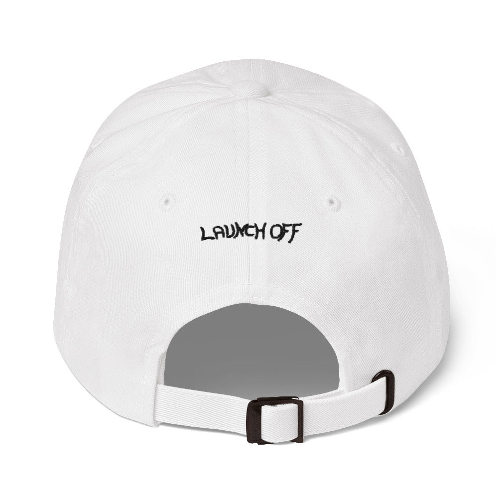 An embroider cap with Launch Off guy!